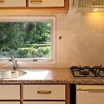 La Stacaravan In De Natuur Bij Maastricht ofrece vistas al jardín, así como un sofá en las instalaciones. Los cuartos de baño también disponen de un inodoro separado y ducha.